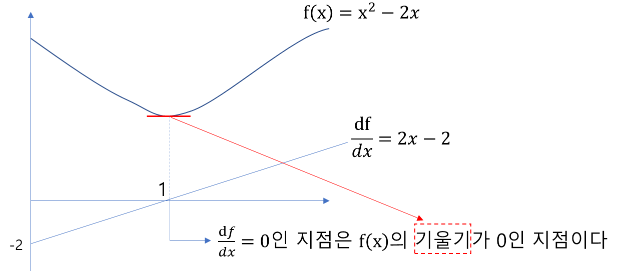 1) $f{(x)}$를 1계 미분한 $f'(x)$는 기울기를 나타낸다