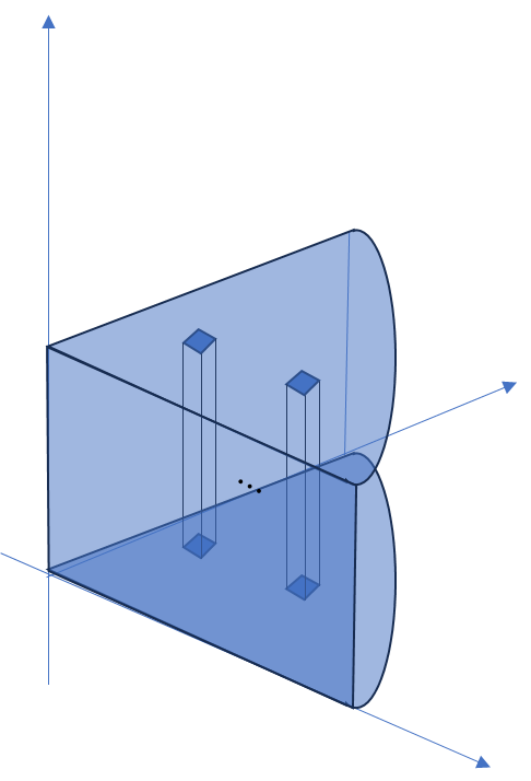 늘린 직육면체를 도형의 모든 공간에 대하여 누적한다.
