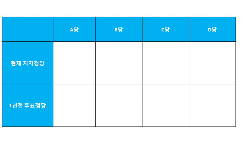 -. 이 때, (A당, B당, C당, D당) 과 같이 행에 속하는 분류를 A