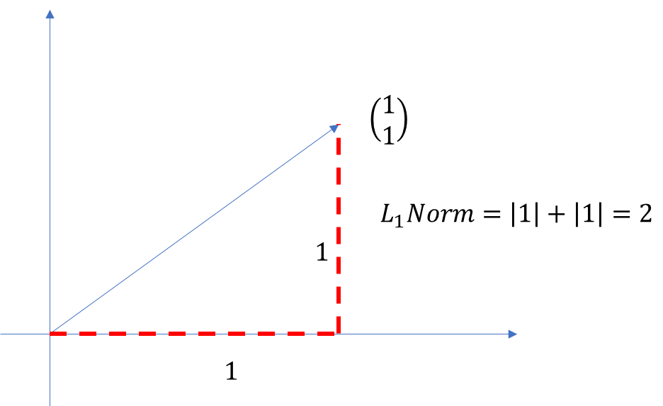 마치 택시기사가 네모반듯한 맨해튼 거리를 운전하듯, 기저를 정직하게 따라가서 구하는 크기를 의미한다.$L_{2}norm$